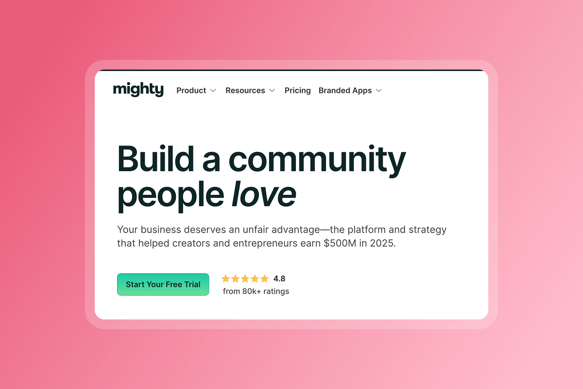 Consider a community‑first platform like Mighty Networks when the community experience is the core product and courses are secondary. Pair with a course or app builder as needed.