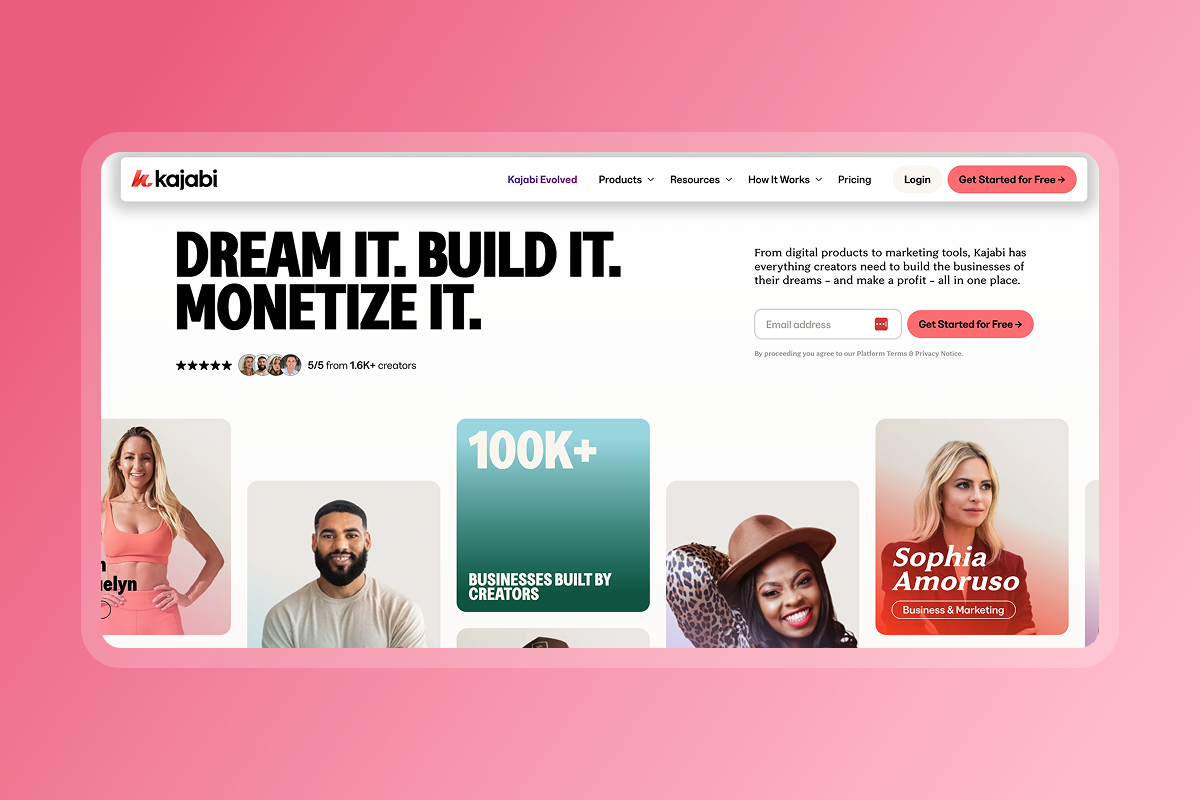 - Kajabi: Website builder, landing pages, email marketing, and pipelines are native.