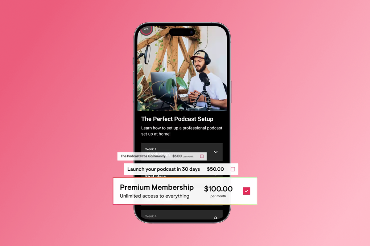 - Mature product suite for courses, coaching, communities, and podcasts.